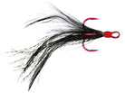 Feathered trailers are known fish stimulators that give more natural action to top waters, ripbaits, and crankbaits. These trailers are tied on premium Owner Hooks with the exclusive black Chrome finish. The hooks have a touch of metallic flash in them to really attract attention. The feathers are securely tied and glued in place, so they won't fall apart on you after hooking a few fish.