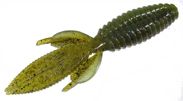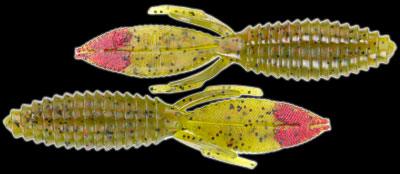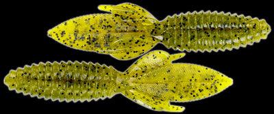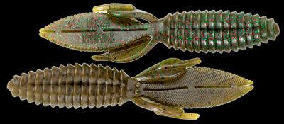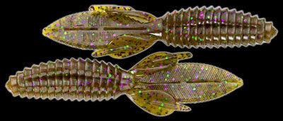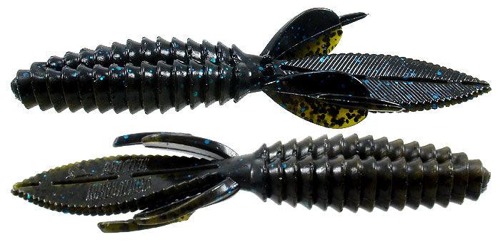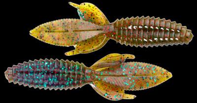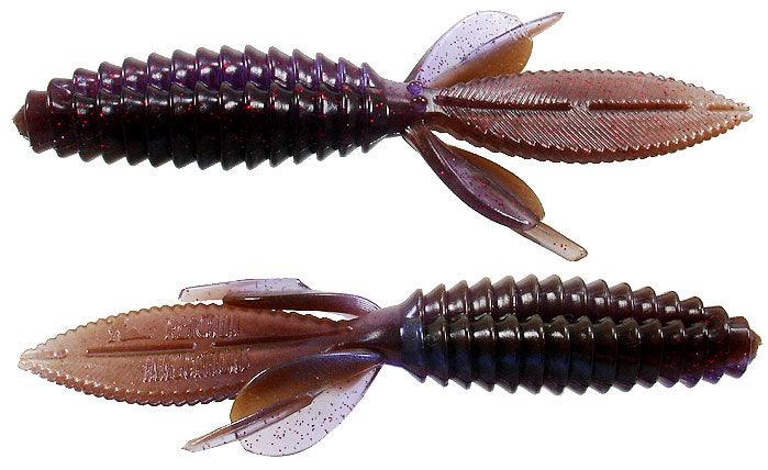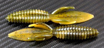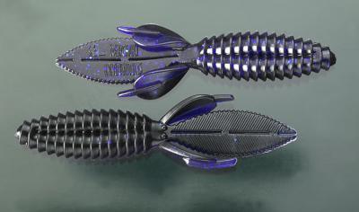 The body of the Sweet Beaver features forward facing ribs that create lots of pressure waves that let bass know something is moving and offers bass a texture that they seem to like when they inhale the lure. The centerline is recessed for better hook penetration but the 'nose' of the lure is thick to hold your hook without tearing on every fish. The long, flat, beaver tail is textured on the flat surfaces and along the edge, and it's splitable so you can have a twin tail look, an attention to detail not seen in most soft plastic lures. The Sweet Beaver also has additional tails set at 90 degrees to the beaver tail for fish attracting movement no matter which way the lure is moved.
