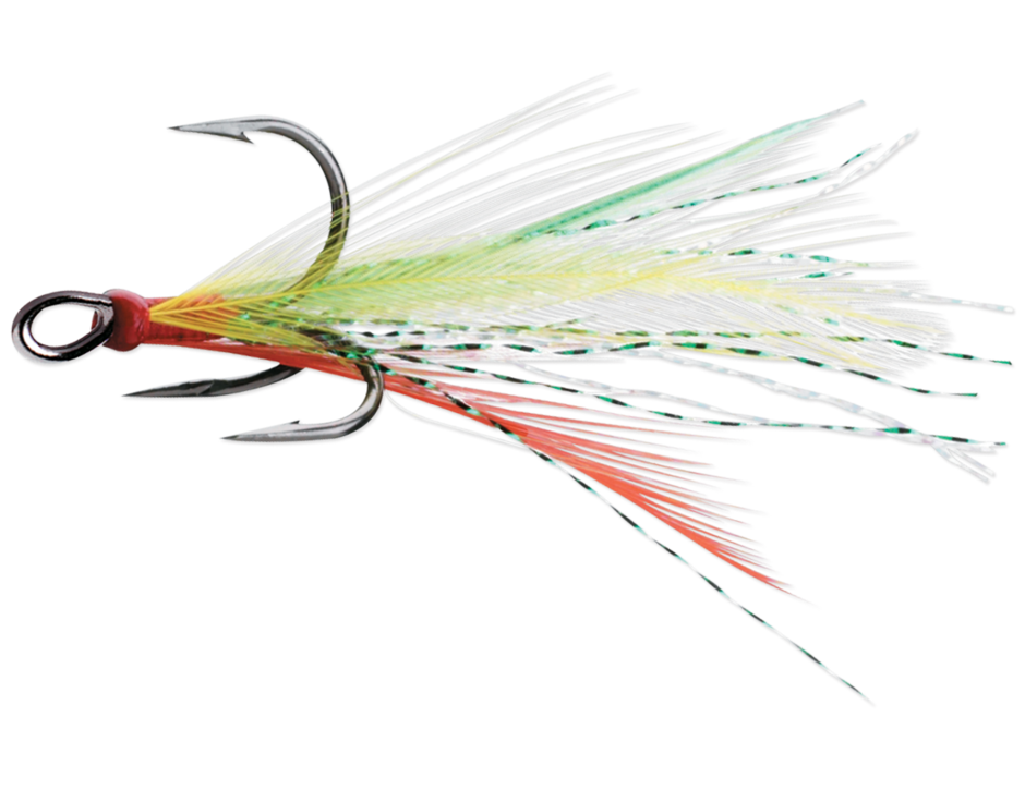 Perfect for upgrading the rear trebles on your favorite lure, the VMC X-Rap Tail Treble Hooks feature premium natural feathers spliced with highly reflective mylar fibers. Constructed from strong Hi Carbon Cut Steel, the hooks are also equipped with Cone Cut Points for maximum penetration, as well as, a shorter shank for fewer snags. Available in a variety of color combinations to match different lure designs and colors, the VMC X-Rap Tail Treble Hooks are designed to provide your lures with that little extra action and flash - that can make all the difference.